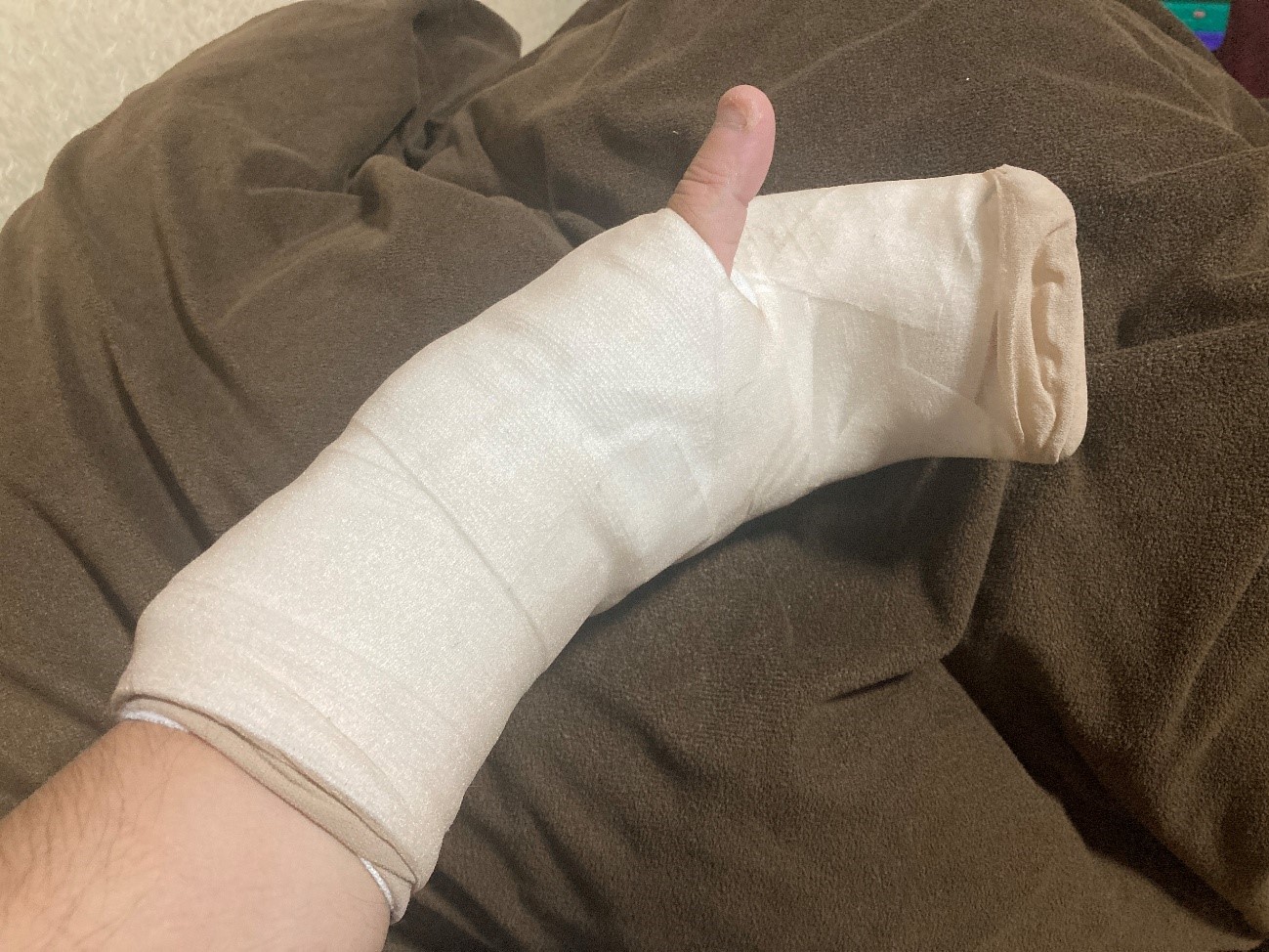 神奈川支店の勝呂です。 怪我しました。包丁を研いでいたら不注意で指を切ってしまいました。 示指切創、 …